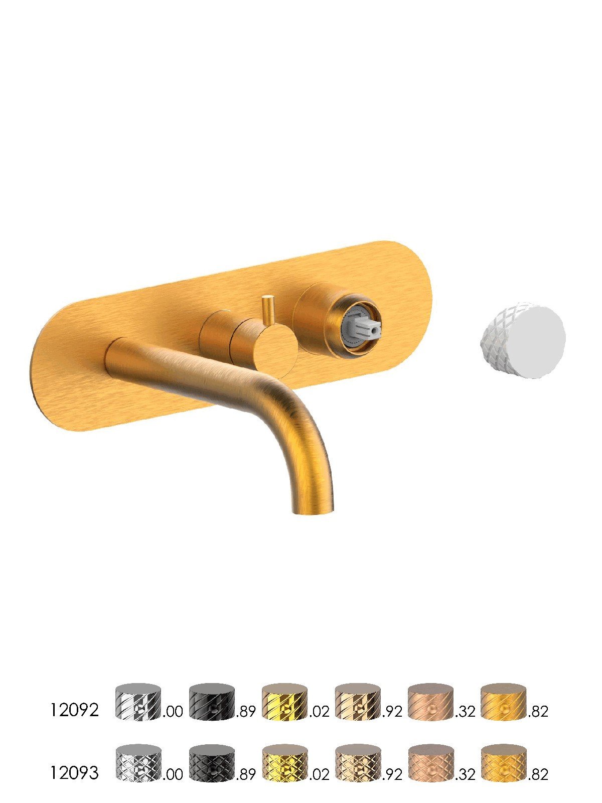 Parte esterna visibile monocomando vasca incasso con deviatore a dischi ceramici a 2 vie con bocca di erogazione, piastra in ottone - Parti Esterne - Contemporary