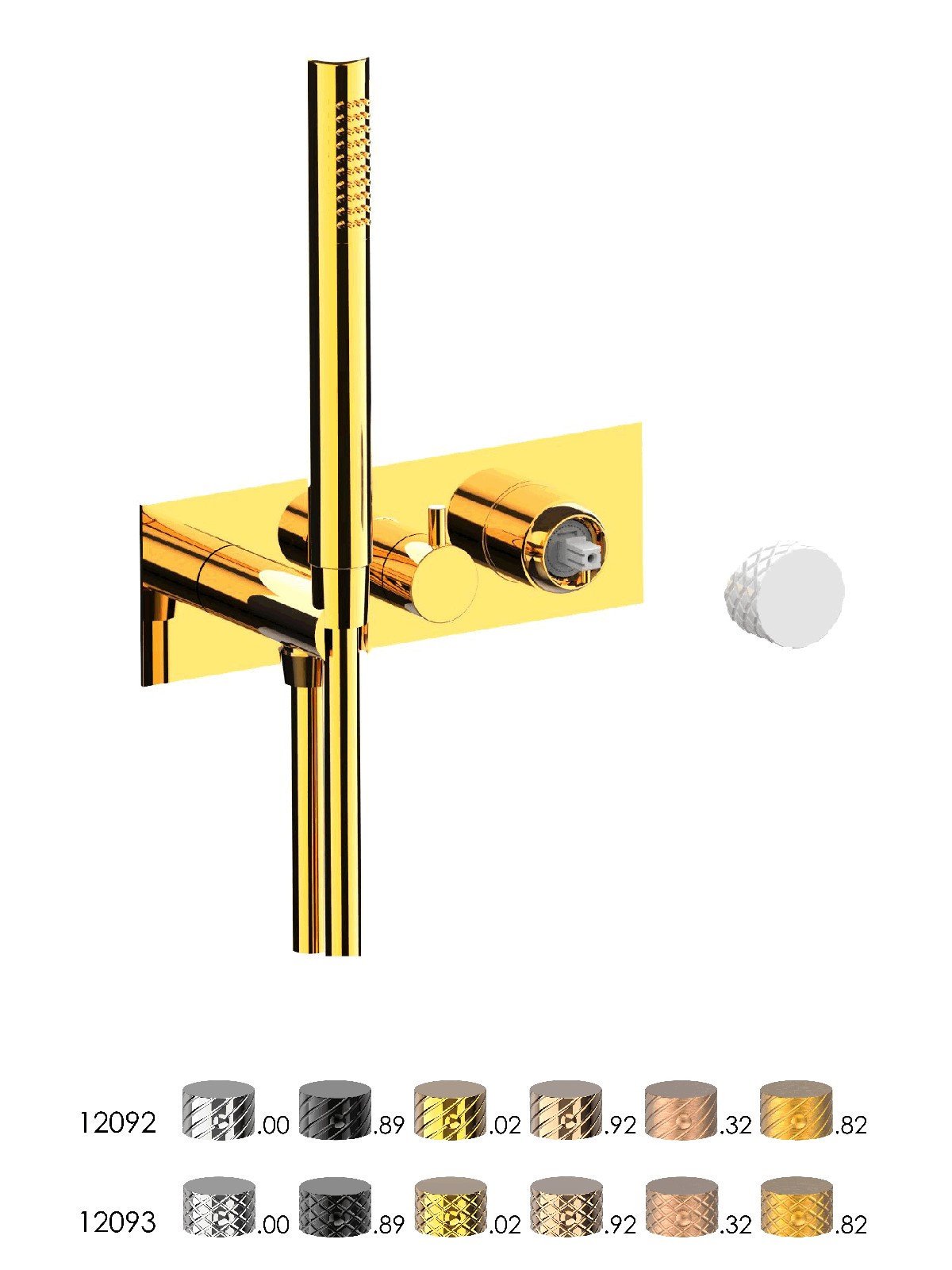 Parte esterna visibile monocomando incasso con deviatore a dischi ceramici 3 vie con doccia fissa a riposo, piastra in ottone - Parti Esterne - Contemporary