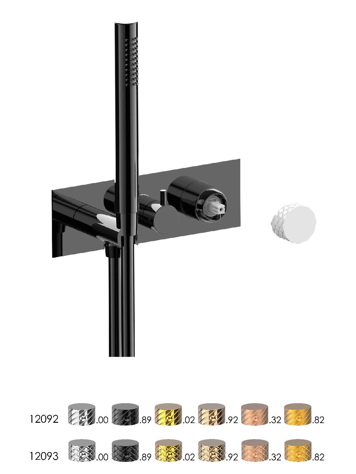 Parte esterna visibile monocomando incasso con deviatore a dischi ceramici 3 vie con doccia fissa a riposo, piastra in ottone - Parti Esterne - Contemporary