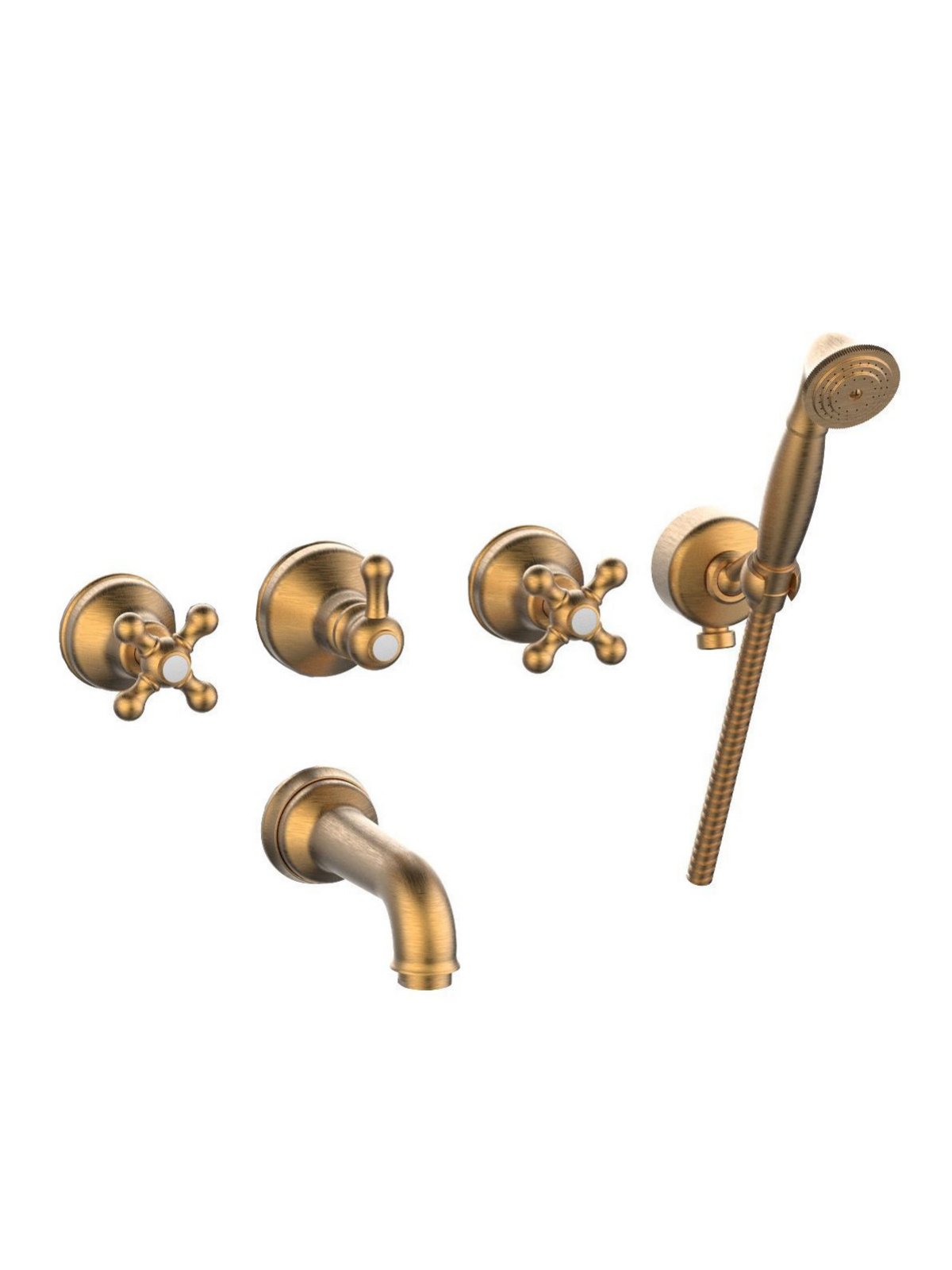 Gruppo incasso vasca, bocca a parete, deviatore centrale, doccia duplex - Dedra - Traditional