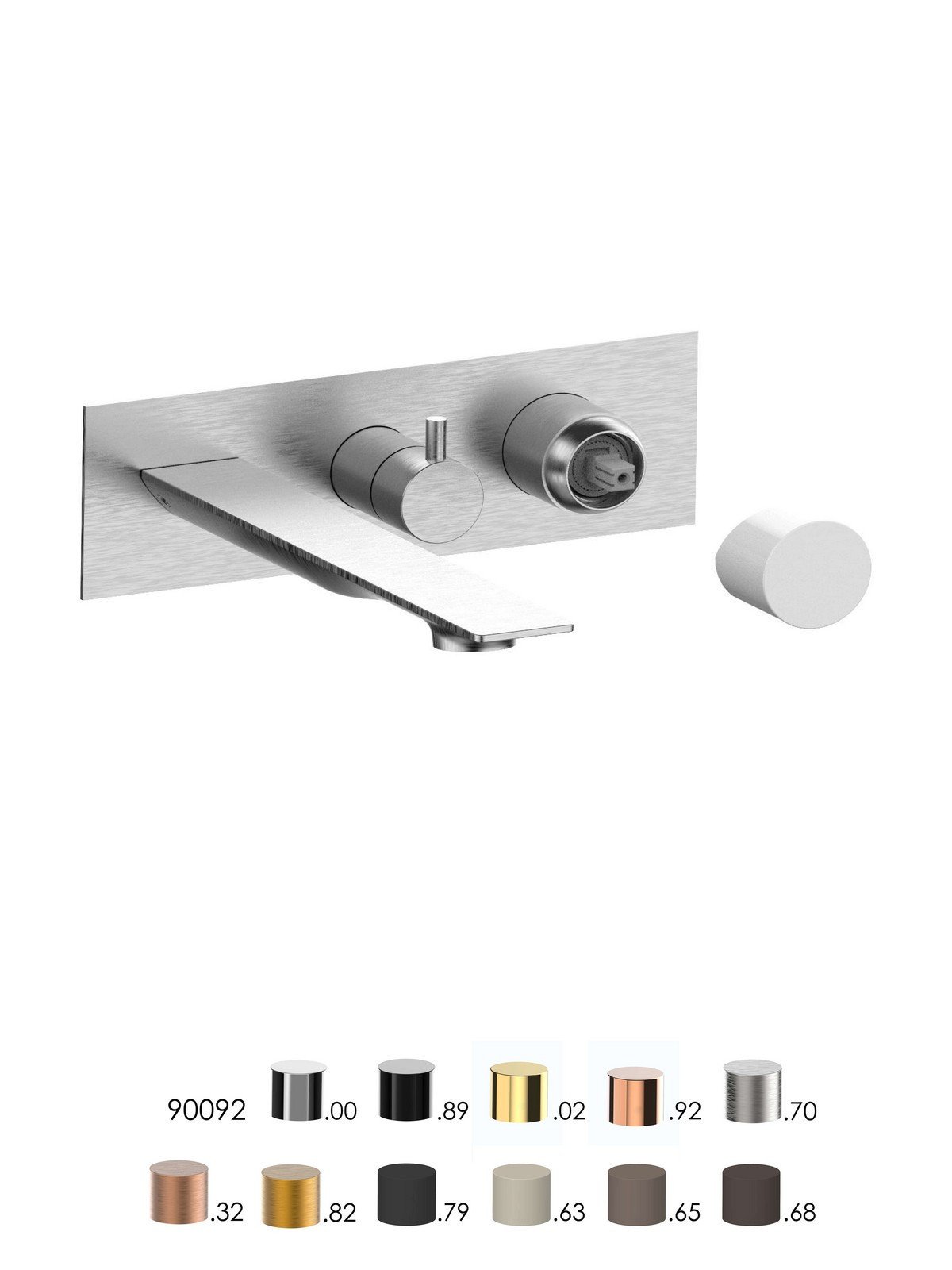 Parte esterna visibile monocomando vasca incasso con deviatore a dischi ceramici a 3 vie con bocca di erogazione, piastra in ottone - Narciso - Contemporary