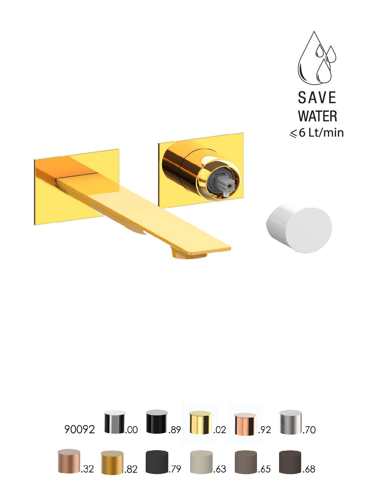 Parte esterna visibile batteria lavabo a parete senza scarico, piastre in ottone - Narciso - Contemporary