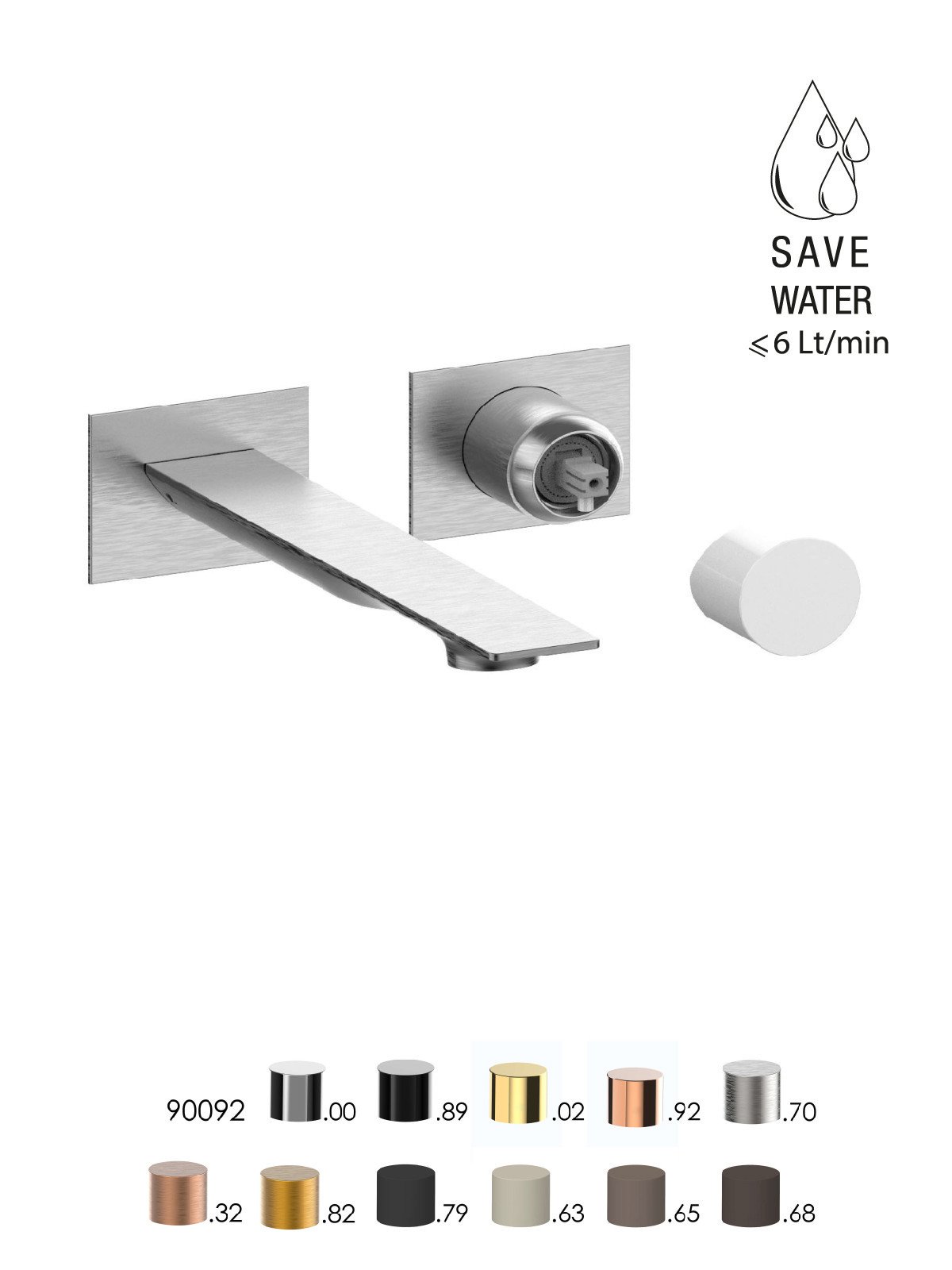 Parte esterna visibile batteria lavabo a parete senza scarico, piastre in ottone - Narciso - Contemporary