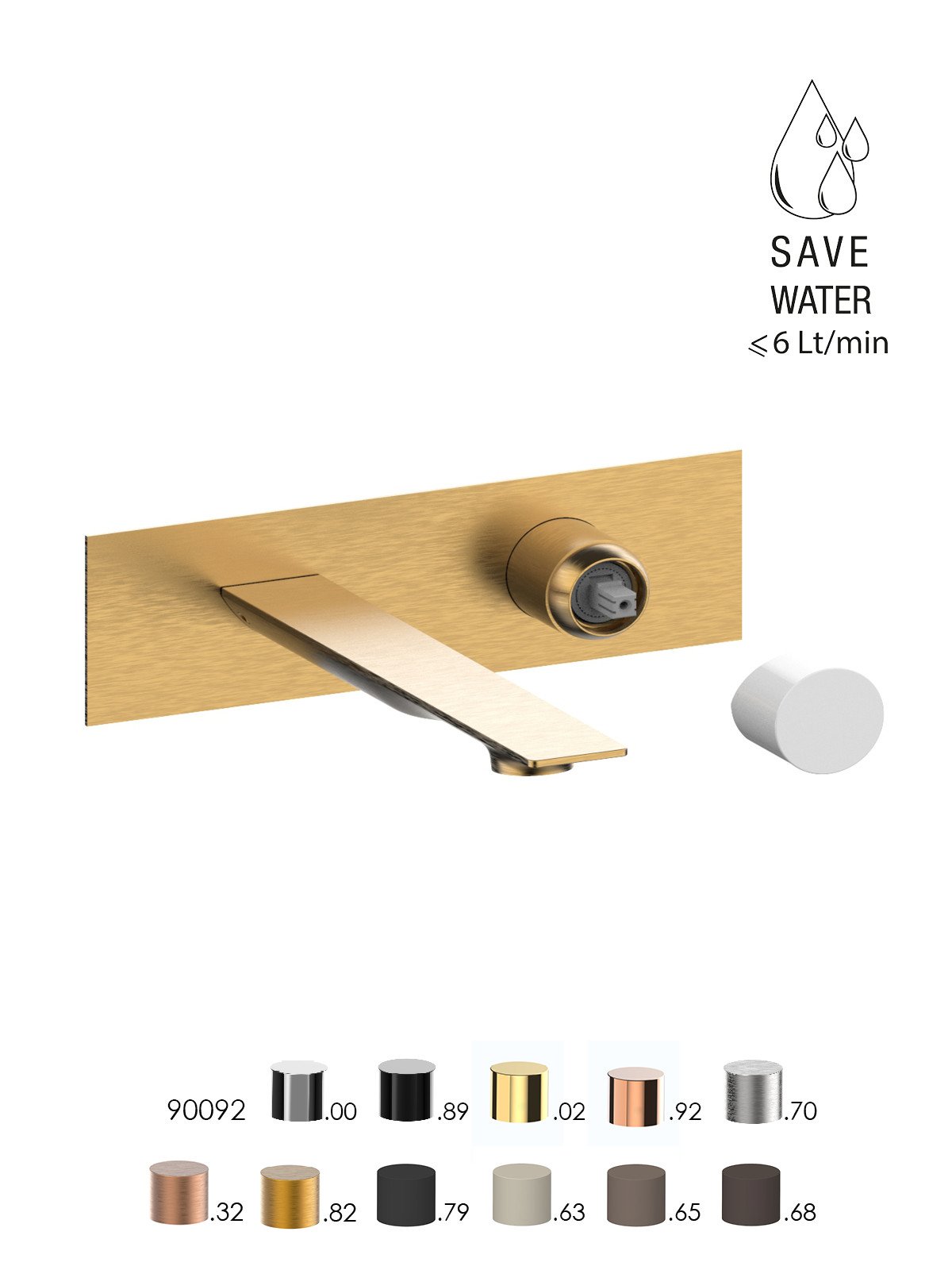 Parte esterna visibile batteria lavabo a parete senza scarico, piastra in ottone - Narciso - Contemporary