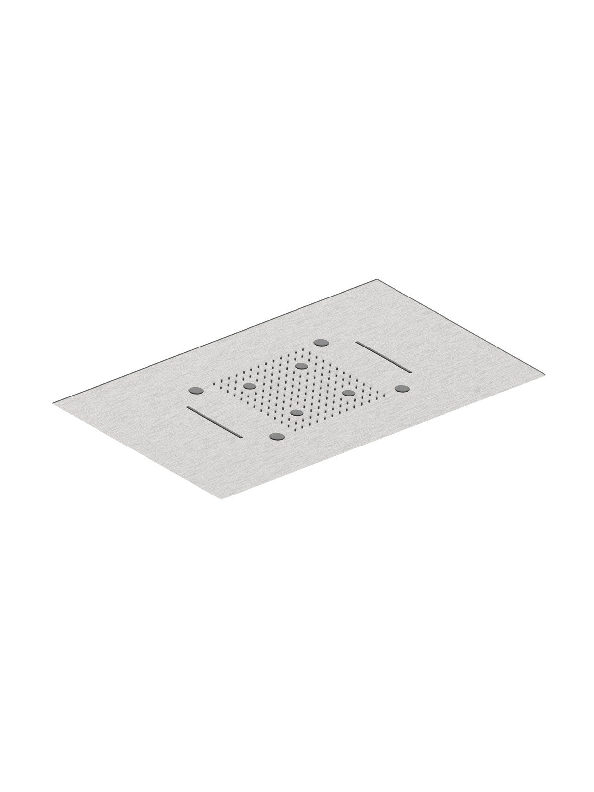 Soffione anticalcareo in acciaio inox da incasso a soffitto 70x40 cm a 3 funzioni: pioggia, due cascate, nebulizzazione con cromoterapia, dotato di pulsantiera (7,5x15 cm) controllo luci interno al box doccia - Docce - Contemporary